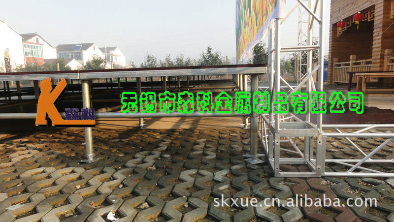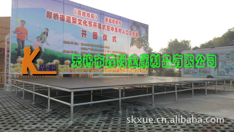此款钢铁舞台确实体现了它独特的特点,安装快速,拆装方便,运输节能等极具一身,目前规格有1.22*1.22或1.22*2.44,舞台可自选舞台脚,调节范围有,0.6-0.85米, 0.6-1.1米,0.8-1.1米,0.8-1.3米,因为工厂为厂家直销,价格按平方计算成本,所以数量越多,价格就核到每平方就实惠,具体可以咨询公司销售客服,舞台质量绝对保证,欢迎到工厂参观,洽谈,一份质量一分货哦,舞台可以任意调节高度,这在很大程度上改善了上下楼梯,地面不平等问题,更加突出了我们专利舞台的可比性。