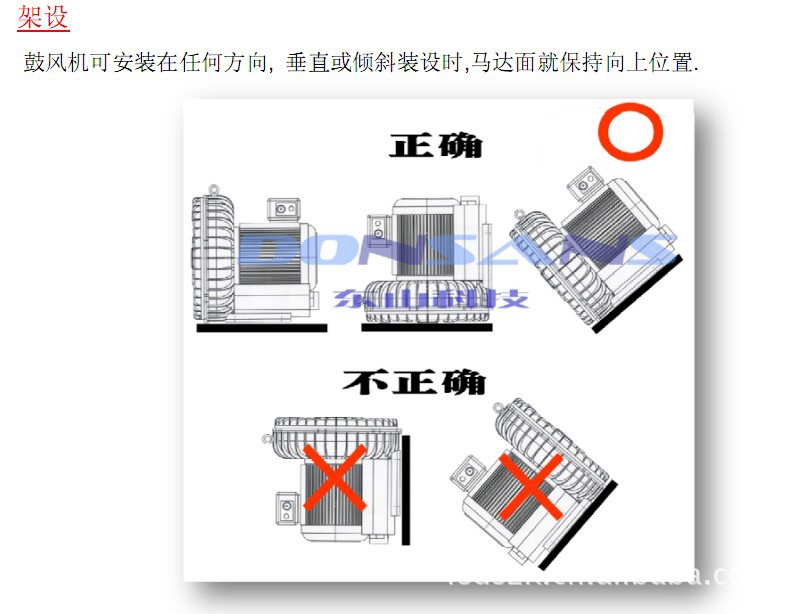龙谷高压风机所选用的功率,系指在特定工况下加上机械损失,自冷风盘的电耗与应有的贮备量而言,并非高压风机在风门全开时所配的功率,故在使用时切勿将风门全开(管道有阻力例外),在运转过程中应严格控制电流,不得超过电机额定值,否则均会烧毁电机。
