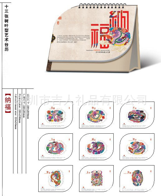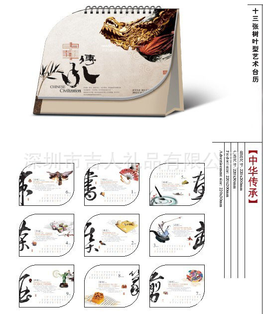 款式多样内容丰富,客户可选择适合企业行业的款式,台历广告位上可烫金或者上机印企业广告,箱装100本。成品尺寸:220*200MM 广告尺寸:320*35MM