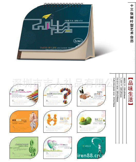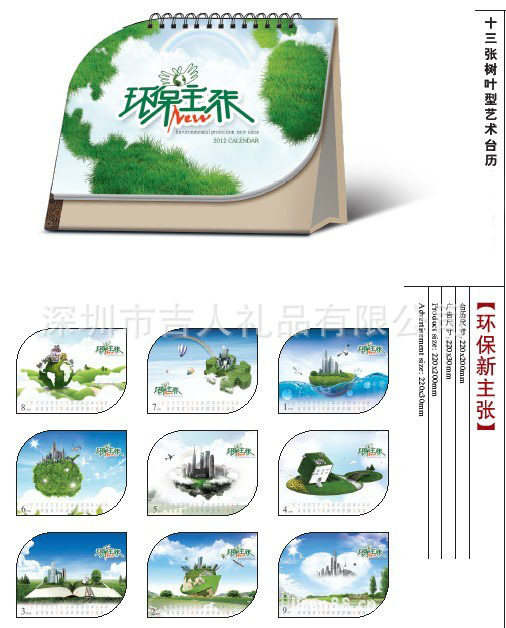 新款十三张树叶型艺术台历 可印制企业LOGO 另可订做专版