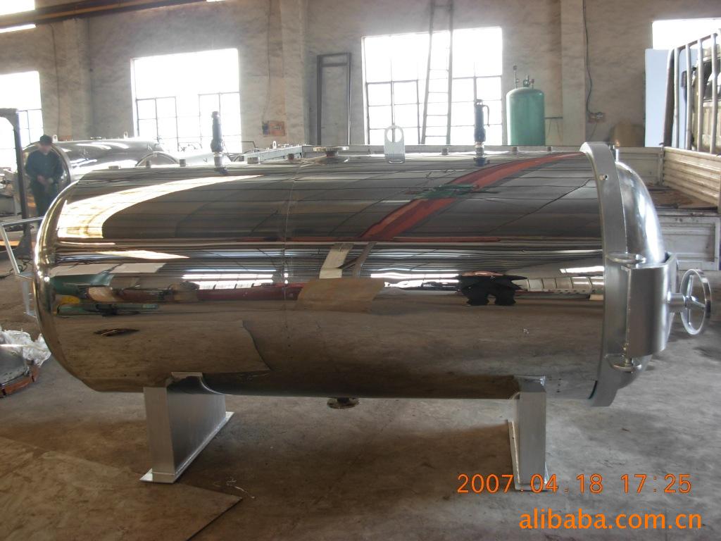产品名称: 灭菌锅产品说明: 主要适用于罐头(如:肉类、禽类、鱼类、蛋类、蔬菜类等罐头)及需要高温杀菌的蛋白饮料(如:牛奶、豆奶、杏仁、椰奶、花生奶、核桃奶等)。 包装物可适用于硬罐头(如:马口铁罐、玻璃瓶罐头、蒸煮袋等)。特别适合软罐头类(如:火腿肠、蒸煮袋装鸡、扒鸡、纯牛奶等)。