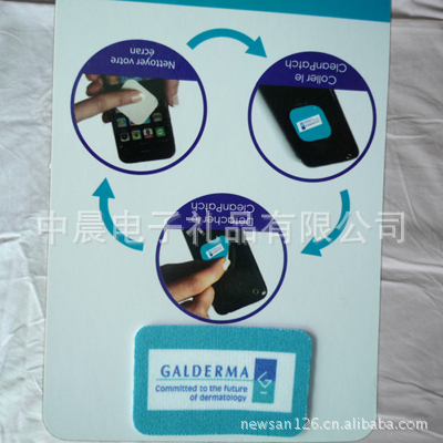 广告效益与实用性相结合,以数码产品为主要传播载体,成为新型时尚的移动广告宣传载体。是生产新型广告媒体的企业。公司采用超细纤维印花层以日本专利印刷技术进行加工生产可粘贴抗辐射手机请洁贴,超细纤维双面印制高档清洁巾,眼镜布,促销用笔记本鼠标垫等。可按客户要求制作各种图案及产品