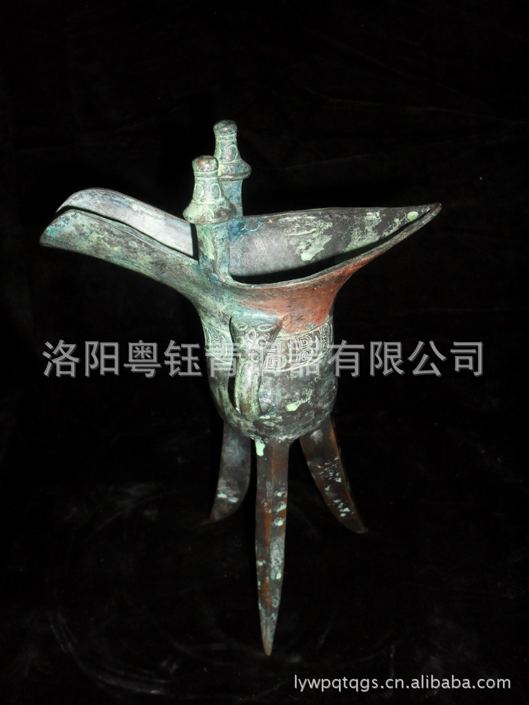 西周穆王时期温饮酒器父辛为人名爵为器名该器宽流、长尾、深腹、圆底,下乘三刀状足。流饰垂冠凤纹,记木羊氏为父辛做器。1976年陕西扶风白家村出土,现藏于周原博物馆。