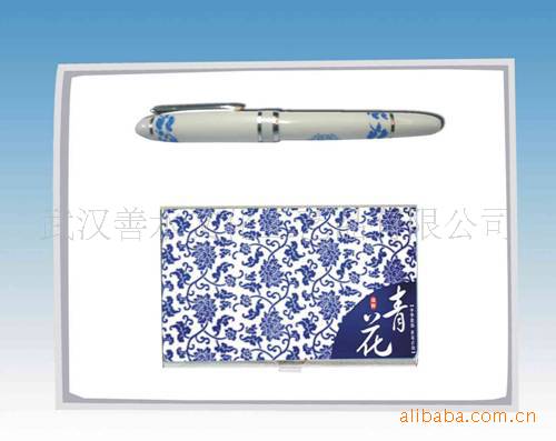 青花笔身,名片夹,盒面都可以根据客户需要订制各种LOGO。