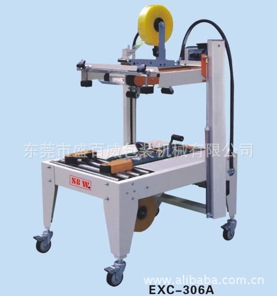EXC-306A※本系列是以单机机型,上下“一”字型自动封箱包装作业※传动设计方式,采用侧传动送箱贴带封箱包装作业※适用纸箱规格内,手动调整(1-2)分钟内可完成※包装物件,凡是纸箱皆可采用本系※经济、省力、美观、轻巧※机件性能精密又耐用,运转稳固寿命长※保证较人工贴带美观、速度快、效率高
