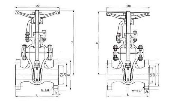 Z41Y-16I,Z41Y-25I,Z41Y-40I,Z41Y-64I,Z41Y-100I铬钼钢闸阀主要尺寸: