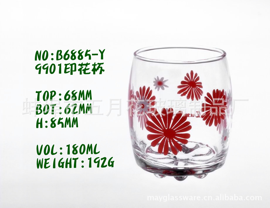 五月花玻璃专一致力于玻璃制品行业的发展与创新.专业生产各种型号的玻璃制品/及各类玻璃器皿的烤花、蒙砂、喷砂、印花、喷色、刻花等系列。可根据客户的不同需要开发生产!公司将以现代企业标准实行规范化管理,为您公司的宣传锦上添花,为国内外客户提供最优质的服务。欢迎您联系我们!