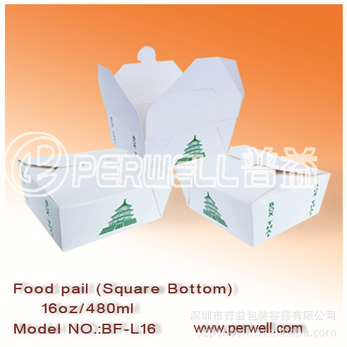 功能:该产品是欧美国家流行的炒面类外卖打包餐具,是炒面、炒饭等食品的最佳纸质包装容器。款式有圆底、方底、长方形底等,其中方底盒可配带纸(或塑料)提手,携带更方便。