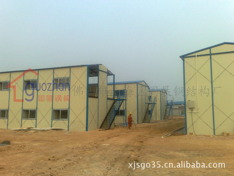 佛山市南海区国展钢结构厂(http://www.guozhan.net)位于佛山市南海区罗村务庄工业区,主要生产全彩钢双面夹芯板、镁磷复合夹芯板、PU发泡瓦、活动板房、活动办公室、各类集装箱板房、宿舍、展示厅、活动商铺、卫生间、保安亭、岗亭、活动围墙、工业围墙、轻型钢结构等等,规格按客户要求灵活制定,所需材质亦应客户需求定制,价格优惠,物美价廉,服务周到,施工快,效率高,环保节能,无污染,是理想新一代的环保产品,欢迎各客户前来订购来,联系人:冼先生13927269737