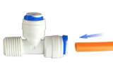 1、将切好的管子顶端插入快速接头,用力插到底;