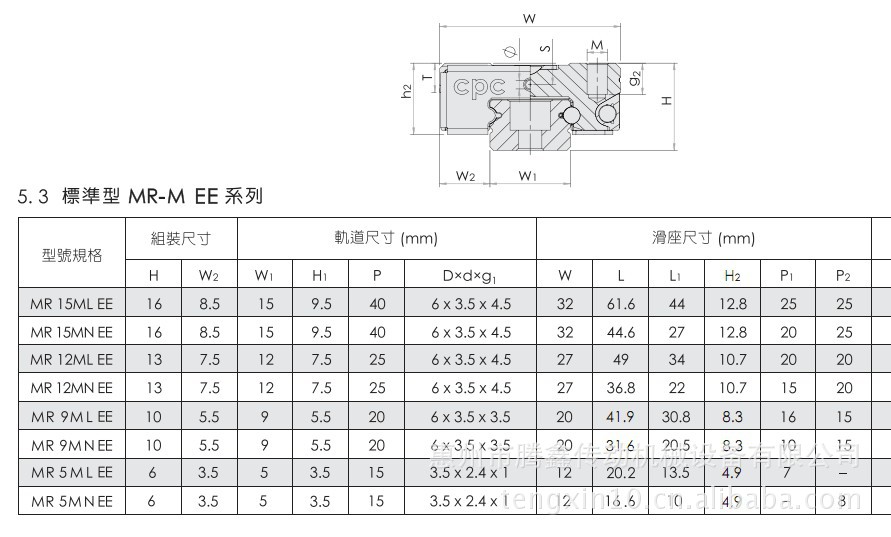 精度等级MR微型滚珠线性滑轨系列,提供N、H、P 三种精度等级,供设计选用