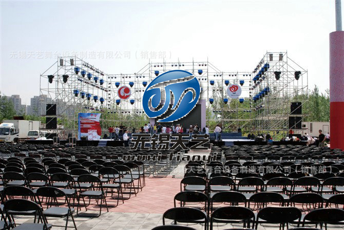 无锡天艺舞台设备制造有限公司是一家以专业生产展览钢制桁架,快装活动舞台,铝合金桁架,铝合金灯光架,雷亚架,A字架,铝合金舞台,玻璃舞台,折叠舞台,展览篷房T台为一体的综合性的大型生产企业。公司位于锡山经济开发区。公司拥有成熟的销售团队,竭诚为您提供最优质的服务,拥有最强大的技术和设备支持,全力为您打造质量最精的产品,公司秉承“质量为首,服务为先,诚信为本”的经营理念,立志在行业内创出辉煌!争创行业第一!欢迎来厂参观洽谈。我们竭诚为您提供最优良的品质和最好的服务。