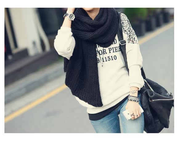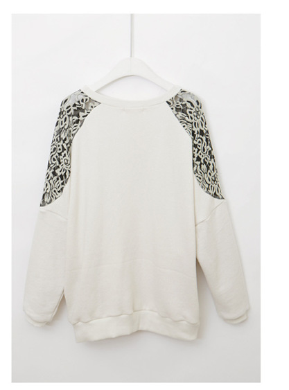 袖长: 长袖领子: 圆领图案: 字母风格: 淑女适合人群: 淑女颜色分类: 米白 深灰尺码: 均码季节: 春季 秋季材质: 其它袖型: 常规款式细节: 蕾丝花边工艺: 拼接