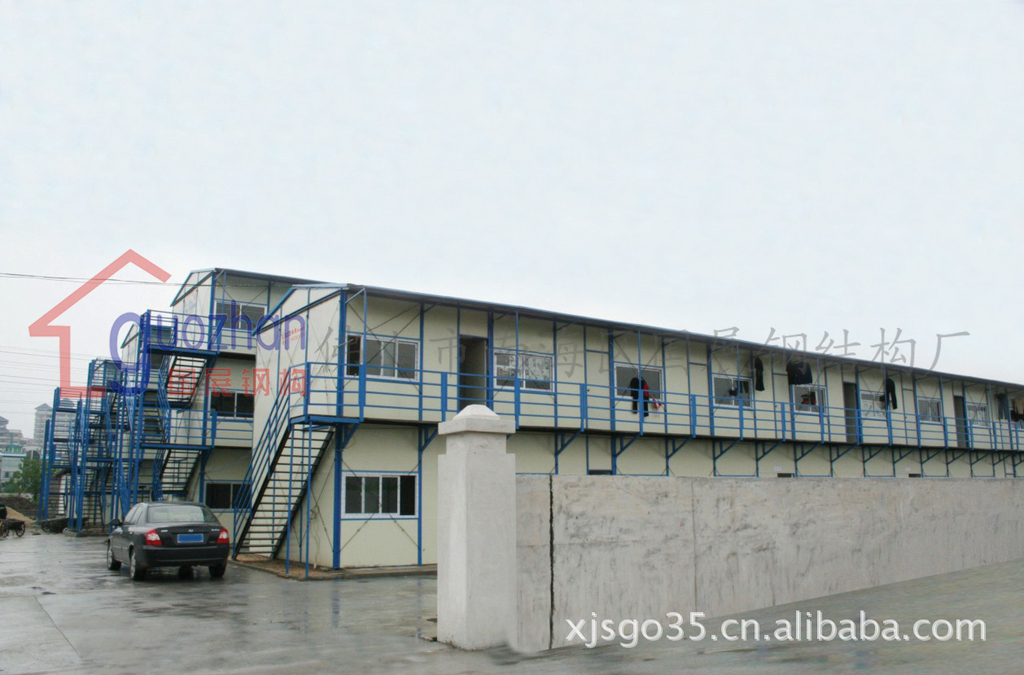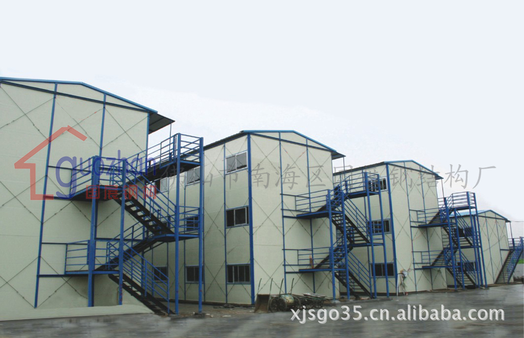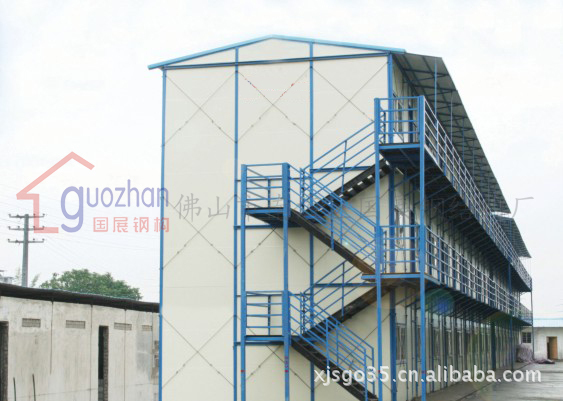 佛山市南海区国展钢结构厂(http://www.guozhan.net)位于佛山市南海区罗村务庄工业区,主要生产全彩钢双面夹芯板、镁磷复合夹芯板、PU发泡瓦、活动板房、活动办公室、各类集装箱板房、宿舍、展示厅、活动商铺、卫生间、保安亭、岗亭、活动围墙、工业围墙、轻型钢结构等等,规格按客户要求灵活制定,所需材质亦应客户需求定制,价格优惠,物美价廉,服务周到,施工快,效率高,环保节能,无污染,是理想新一代的环保产品,欢迎各客户前来订购来,联系人:冼先生13927269737