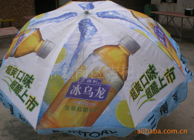 广告伞作为一种现代新颖广告载体,具有流动性大、色彩鲜艳和良好的视觉效果,具体可参考|欢乐雨伞业其图案设计不受限制、结构可任意选择以及美观耐用、质优价惠等多种优点,成为企业广告宣传的一种重要形式。广告伞可为企业在产品打上logo、企业广告等。