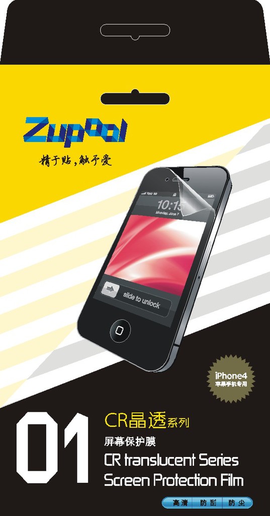 CR 晶透系列:高透型进口PET材料,保护膜表面经高度耐磨防刮花处理,耐磨度高,防刮功能显著、高清表层,光滑表层增加屏幕的亮度和光泽,高度透光,设备屏幕画质清晰逼真等。