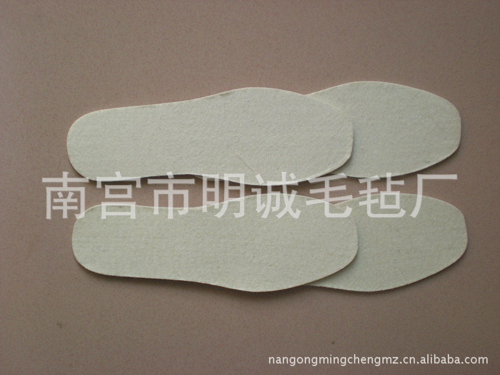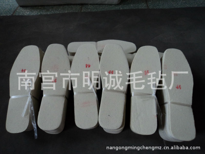 本厂生产的毛毡鞋垫为通用型,适合用于各种鞋。而且不影响外观。质量分类:一级0.6元/双、1200双/件。