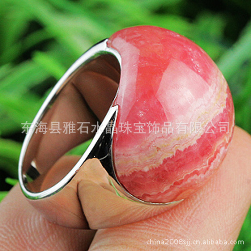 【名称】 925银镀白金天然红纹石大扳指