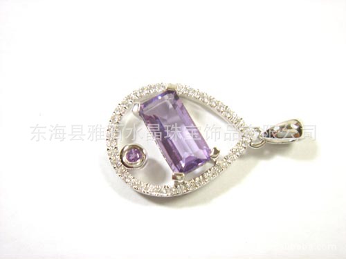 【名称】 925银镀白金天然紫晶长方形吊坠