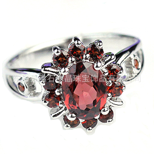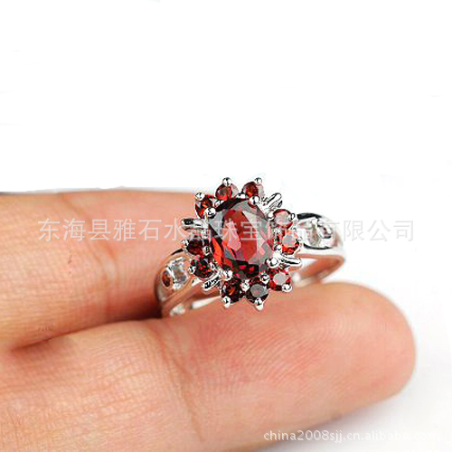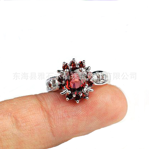 【名称】 925银镀白金天然石榴石太阳花戒指