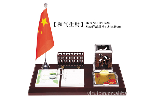 【配置】五星红旗,“和气生财”算盘摆件,镂空笔筒,便签盒、记事便签,4色彩印铜版纸54张记事周历,周历配图案内容:心灵健康。【包装】:单个礼盒 (安全包装,提供气泡袋,纸盒等可供选择)