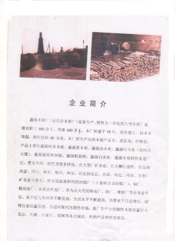 临漳县天达炭业有限公司是果木炭、杂木炭、机制木炭、棍炭、青钢炭、引火炭、工业木炭、炭渣炭粉等产品专业生产加工的公司,拥有完整、科学的质量管理体系。临漳县天达炭业有限公司的诚信、实力和产品质量获得业界的认可。欢迎各界朋友莅临参观、指导和业务洽谈。