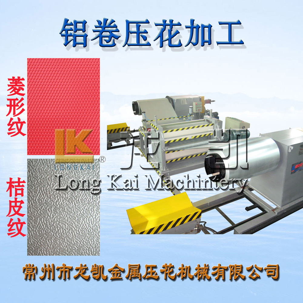 龙凯公司专业从事研究、设计、开发、制造各类金属薄板的压花成型机械设备,龙凯系列压花机可适合及满足您不同产品的技术要求,本公司制造的金属双面压花机并且获得国家多项不同专利,也得到了市场很好的认可,远销台湾、印度、印度尼西亚、马来西亚、尼日利亚、欧美等地区和国家,特别适于:铝板(铝箔)、彩涂钢板、热镀锌板、铜板、冷轧板、不锈钢板的成型压花装饰。