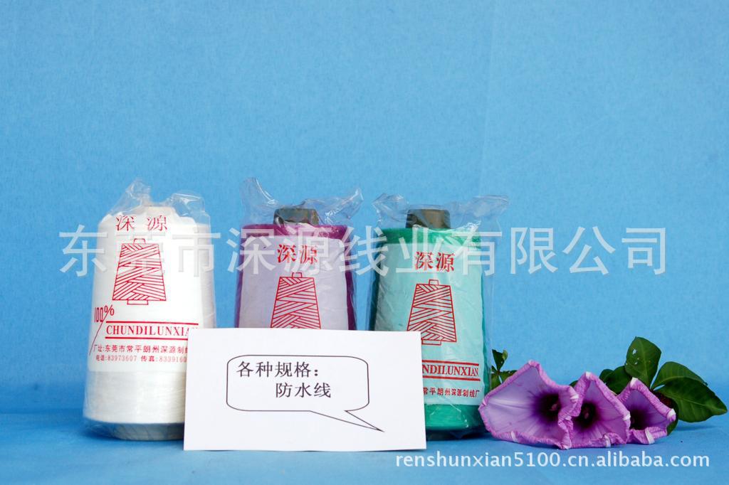 东莞市深源线业有限公司开发生产的绦纶聚脂纤维防水缝纫线,100%绦纶成份,产品以其柔韧滑爽,色泽艳丽,色牢度好,无色差等优异,品质深受客户信赖,颜色可按客户要求配色。