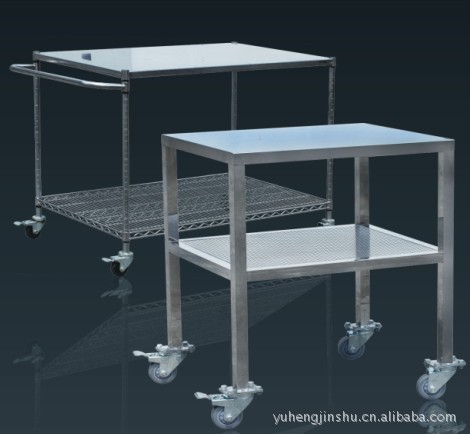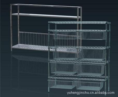 1、技术参数:a、材质:不锈钢、低碳钢镀铬b、表面处理:抛光或电镀铬c、颜色:金属亮银色d、防静电值:105-108Ωe、规格:可定制任意规格f、承重量:每层可承重250KG2、组成:a、 不锈钢、碳钢镀铬网片或平板常规规格(长*宽):600*450mm、750*450mm、900*450mm、1050*450mm、1200*450mm、1500*450mm、1800*450mm、900*530mm、1050*530mm、1200*530mm、1500*530mm、1800*530mm、750*600mm、900*600mm、1050*600mm、1200*600mm、1500*600mm、1800*600mm、1500*700mm、1600*800mm、1800*900mmb、支柱(高度:300-2000mm),把手c、配件:连接器、防静电夹片、接地链、防静电轮(3英寸、4英寸、5英寸,4只万向轮,其中两只带刹车)e、其它:可加边侧网,防物品滑落3、特点:a、简洁美观b、组装容易c、结构耐用d、调校方便——每层均可根据需要随意调整高度