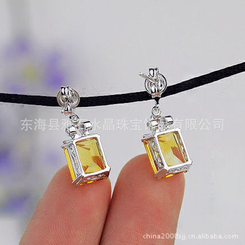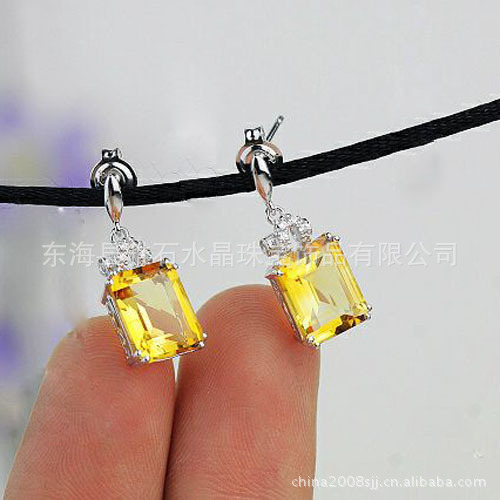 名称: 精品925银镀白金天然黄水晶镶钻方块耳坠