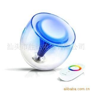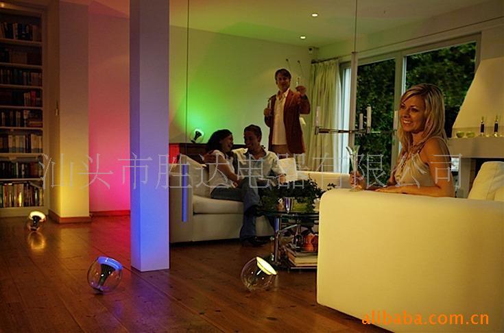 这个奇妙的灯泡是Philips最新推出的LivingColors,它内置了两个红色,一个蓝色和一个绿色总共四个LED,通过配备的遥控器实时的调节灯泡光线的颜色、饱和度和亮度,可以变化出超过一千六百万种不同的颜色,甚至你也可以最多将六个LivingColors相连接,而只使用一个遥控器同步变化它们的色彩以获得更加美妙的光线效果。
