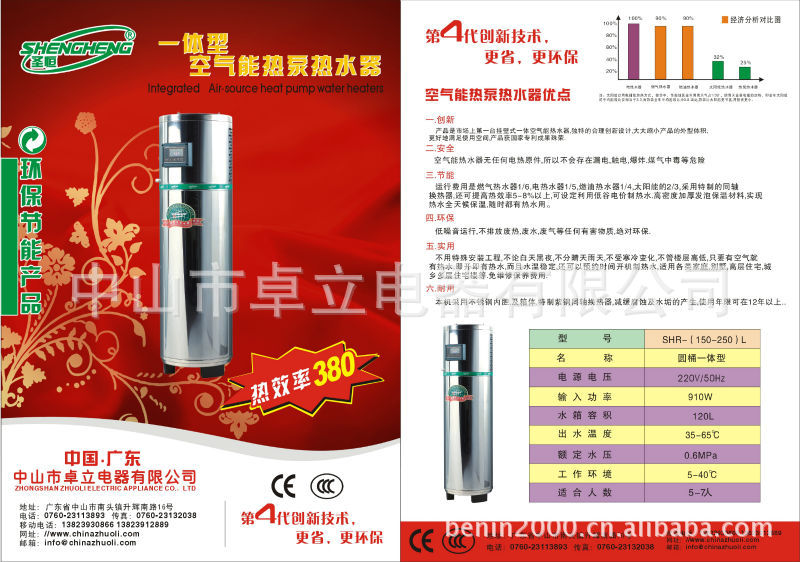 产品是市场上台挂墙式一体空气能热水器,独特的合理创新设计,大大缩小产品的外型体积,更好地满足使用空间,产品获国家专利成果殊荣。