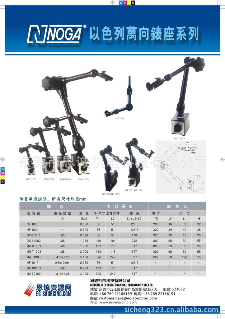 以色列NOGA万向较表座是业界中知名度最高的较表座,销量一直保持行业前矛,使用它是模具工程师制模信心的保证。供应型号有:NF1030、NF1021、NF61003、DG61003、MG61003、MG71003、MA61003、NF1015、MG60103、MA60107、PH2040