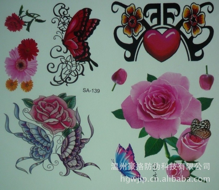 豪格提供个性时尚纹身贴、纹身贴、专业定做各类纹身贴。产品用料安全、环保、防水性能好、图案美轮美奂、元素丰富多彩、款式精致精美。把贴纸浸在水里,全部湿透,在要贴纸的皮肤也弄湿,然后把贴纸贴上去,注意图案向里面即有图的地方已皮肤贴在一起,按住过几分钟就可以揭下,这样图案就印在皮肤上了。