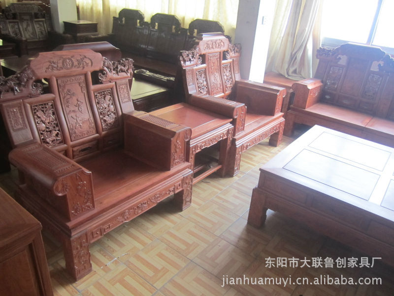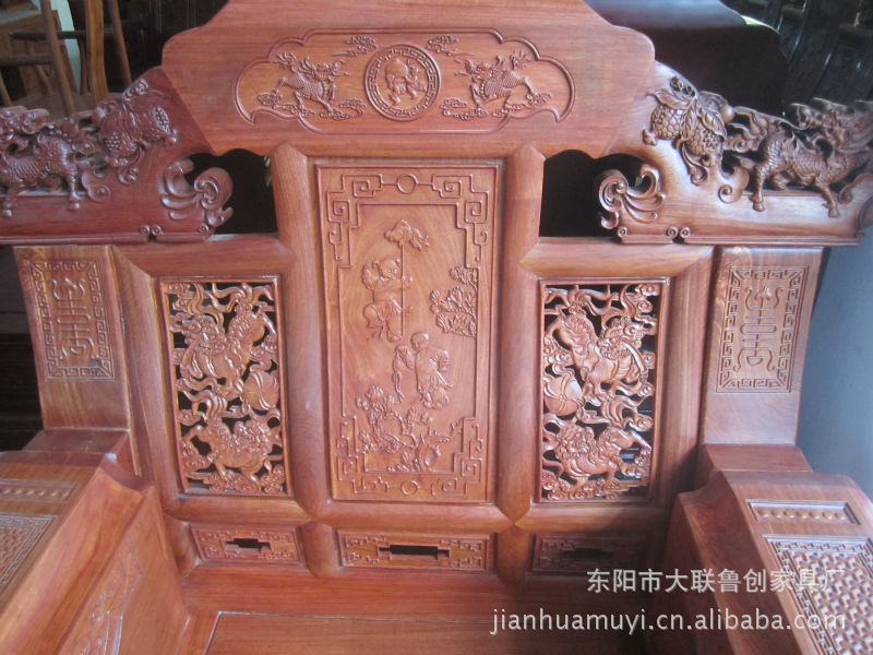 【简单描述】1:此款大奔沙发产品雕刻精细,纹理清晰,仿古而不古,精致而气派,设计独特,不仅实用,而且非常美观。2:木材重,强度高,甚耐用,极少有白蚁和其他虫虫的危害!摆在家中时尚而又典雅,不但不会贬值还能升值和收藏。是送人及居家摆设的上好精品。