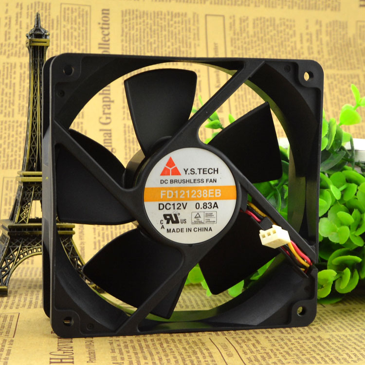 正品元山Y.S.TECH FD121238EB 12038 12V 0.83A 12CM 双滚珠风扇