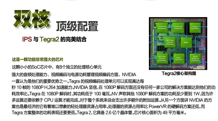 处理器CPU | 英伟达Tegra2,ARM Cortex-A9 |