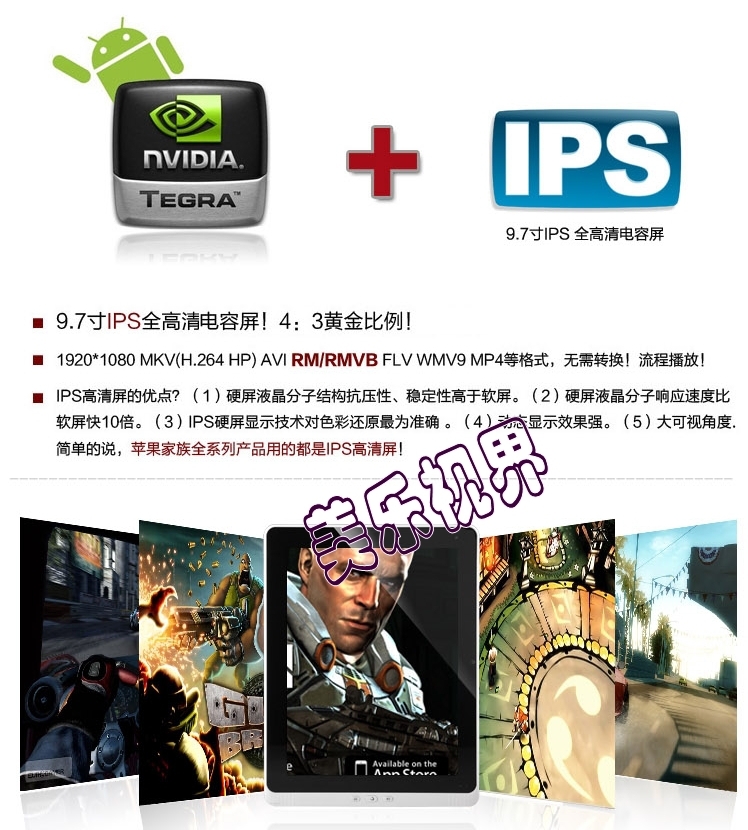 显示屏 | LG 9.7英寸,1024*768分辨率,4:3 IPS硬屏 |