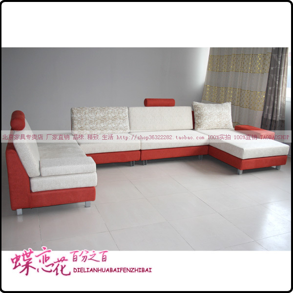 北京布艺沙发 红色随意组合沙发 别墅简约大方布艺沙发 U型沙发店图片展示:
