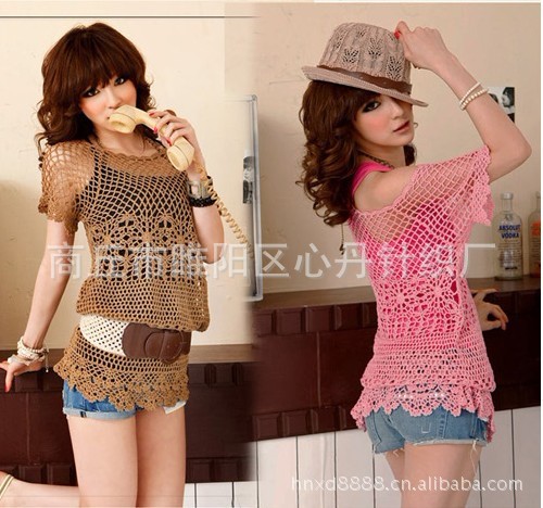 新款夏季女装时尚针织手钩镂空性感可爱圆领针织衫 货号:AAA