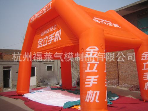 充气广告帐篷,面积大,可再帐篷下面做户外广告宣传活动;可再帐篷上印广告或LOGO。可根据具体要求来定做。该产品适用于体育,旅游,商业,文化事业,尤其是交易展示活动现场及休闲娱乐,度假场所,相对于一般结构帐篷筑物,充气建筑投入成本低,制作使用便利,外型美观,色彩艳丽,创造了一种全新的空间效果!