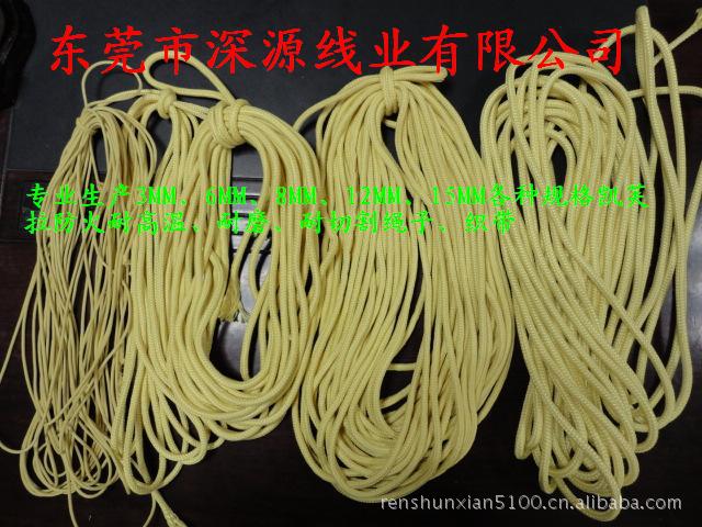 深源线业有限公司生产各类型凯芙拉(kevlar)芳纶辊道编织绳、产品广泛用于:耐高温钢化炉锟道绳、户外运动(风筝线、滑翔伞、攀岩)消防,电力空中作业(安全带、绳)起重,运输(捆绑带、绳)(分别有:空心绳与有心绳)凯芙拉纤维扭绳、是以美国杜邦公司生产的kevlar纤维编制而成。kevlar有极高的强度,大于28克/旦,是优质钢材的5-6倍,模量是钢材或玻璃纤维的2-3倍,韧性是钢材的2倍,而重量仅为钢材的1/5。凯夫拉的连续使用温度范围极宽,在﹣196。C至204℃范围内可长期正常运行。在150℃下的收缩率为0,在560℃的高温下不分解不熔化,且具有良好的绝缘性和抗腐蚀性,生命周期很长。钢化炉锟道绳常用规格:扁形12X4mm、12X3.5mm 12X5.5mm 13X3.5mm 13X3mm 10X4mm 10X3mm 9X4mm 9X3mm 8X3mm
