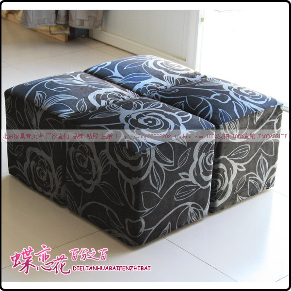 黑底灰花布艺凳 四个一组特价沙发凳 棋子凳 商场展柜沙发踏定做图片展示: