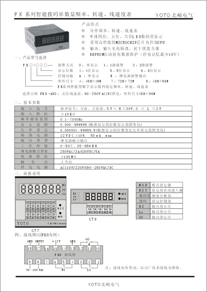 FK8-A50 | 48H×96W×100L | 90~250VAC | 单显示 | 5位LED |