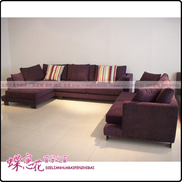 紫色风情羽绒U型大方休闲沙发品牌:蝶恋花百分之百