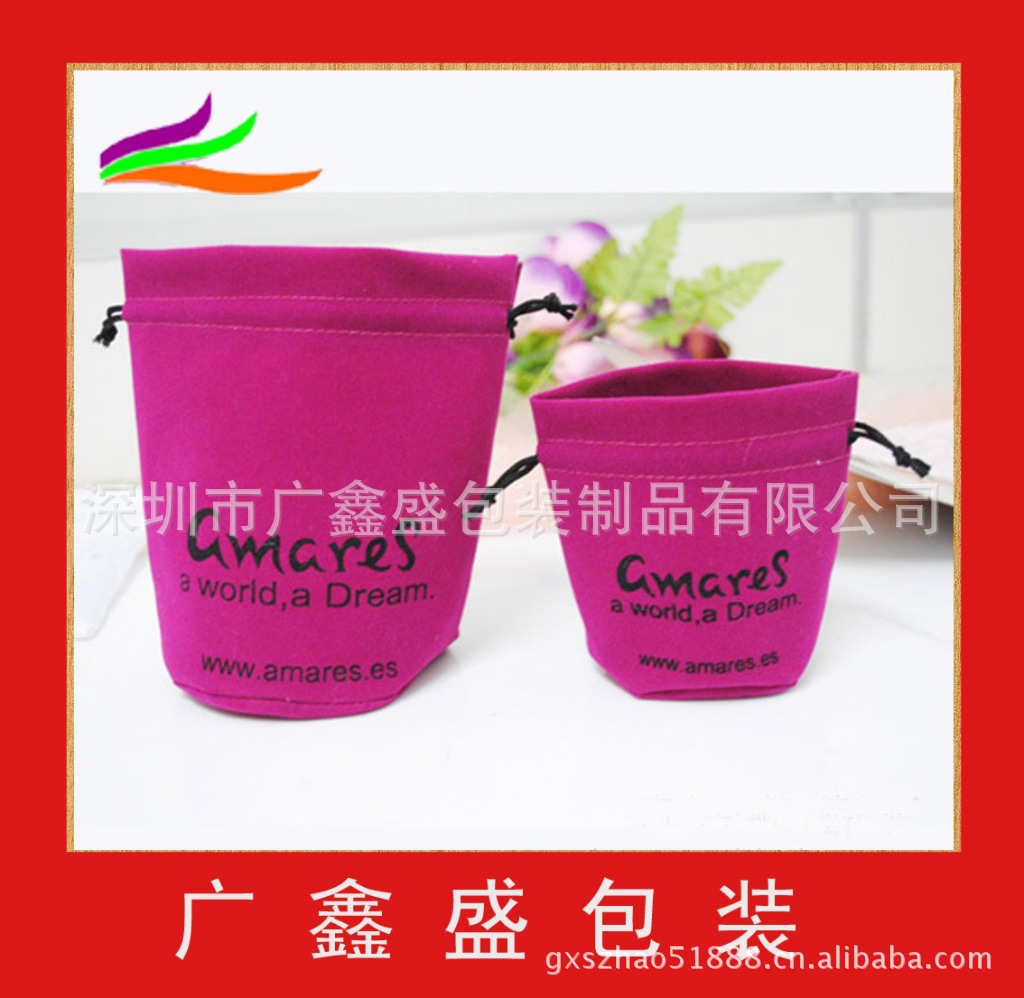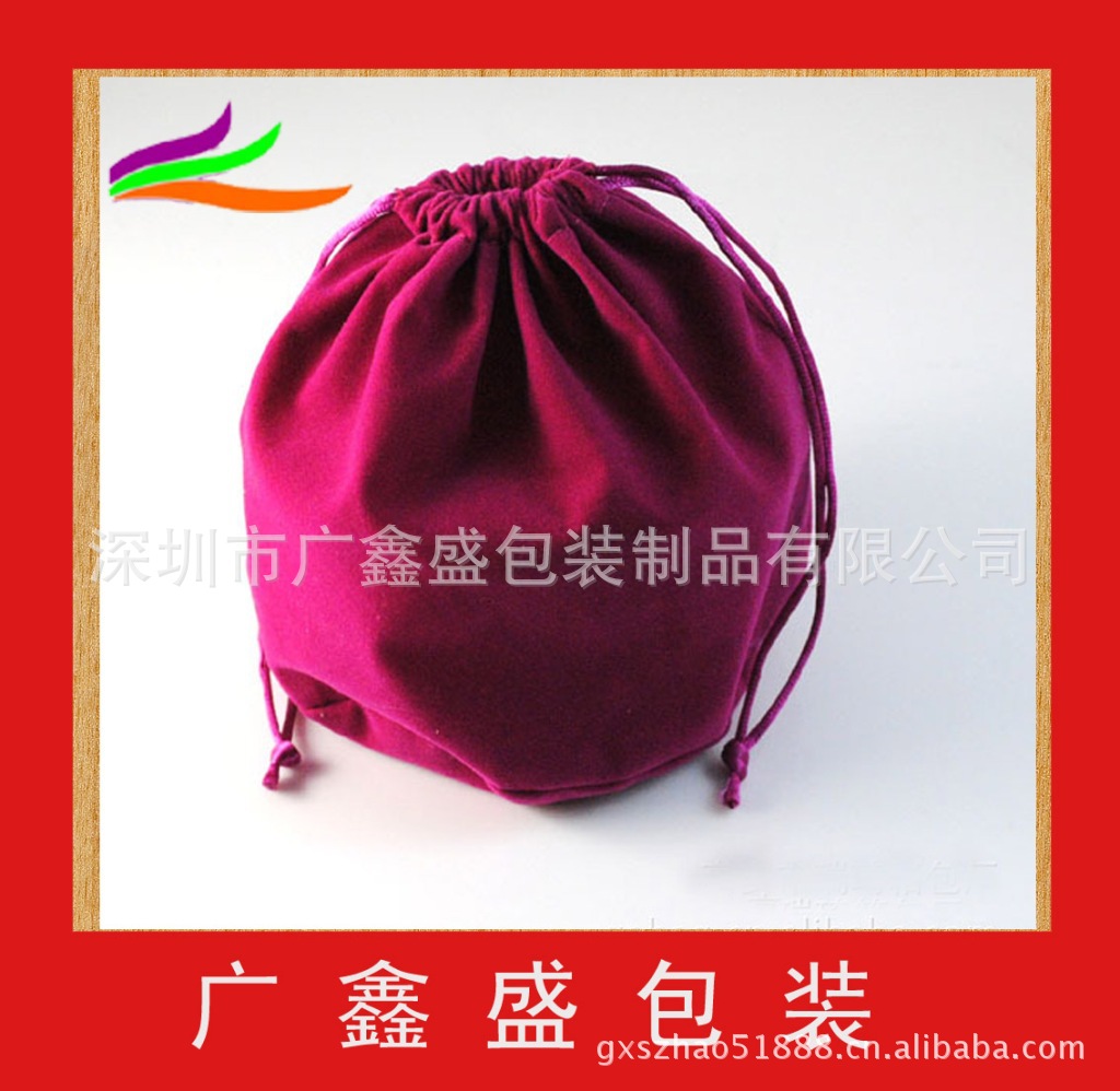 绒布袋的材料可以是尼龙底平绒;针织底平绒;棉布底平绒,双面绒,长毛绒等。这只是最常用的,其他较少将的材料如:珠丽绒、宝石绒、电子绒、麂皮绒都是可以做绒布袋。绒布适应各种不同的印刷工艺,丝网印刷,烫金烫银,刺锈,热转印等,都比较适合。也适合做各种不同的做工,车直线,锁边,倒车等。还可以根据产品做成束口的,带拉链的,手提的等等。
