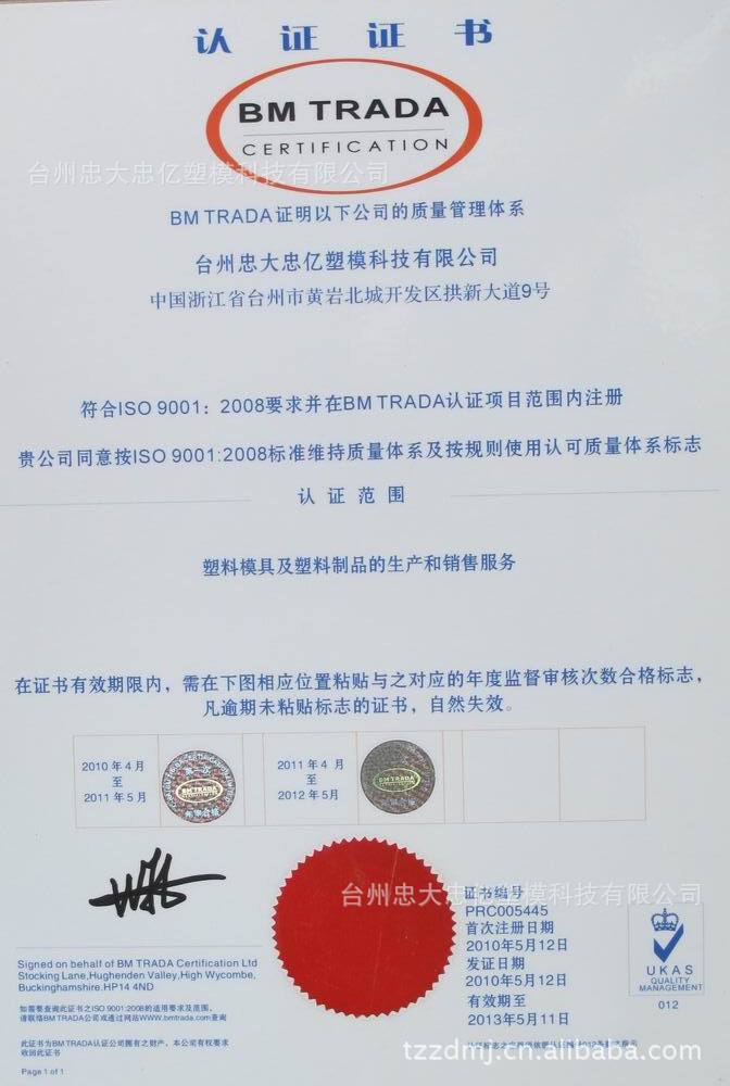七、忠大模具已通过ISO9001:2000国际质量体系认证!技术要求如下:
