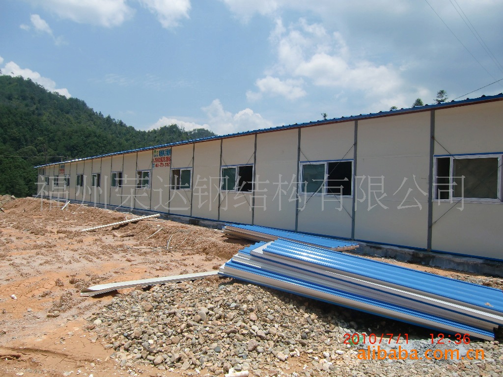 f) 外墙板:采用双面彩钢夹心板制作,中间为50毫米厚EPS泡沫。