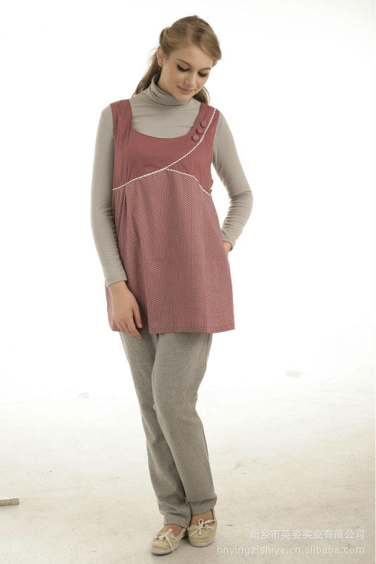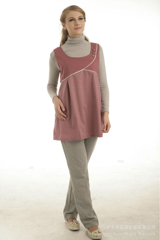 【款式特征】领口U字设计,配有蕾丝边,装饰小布扣,更大的体现准妈妈“韵”味十足!侧面拉链可以完全拉开,更方便穿脱!