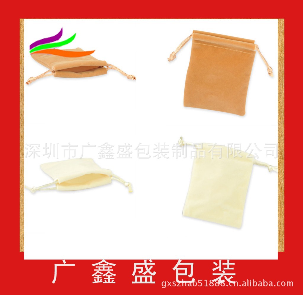 材 质】:绒布、植绒布(双面绒、绸布底、尼龙底、棉布底、针织底...)、天鹅绒布、沙 发绒布、宝石绒布、长毛绒布、珠粒绒布;棉布、麻布、帆布、土工布、绸布、色丁布、眼镜布、佳织 布、边纶布、防水布、尼龙布、PU革、雪纱、牛津布、PVC、网布等 。。。 【品 牌】:广鑫盛 【公司介绍】:深圳市广鑫盛有限公司自创办以来,凭着自立的精神以诚信经营的原则, 积极进取,勇于开拓,经过多年的努力拼搏,公司目前拥有成熟的市场渠道和良好的企业声誉。配备各 种电脑针车、专业设计、生产范围覆盖:各种绒袋、绒布袋、植绒袋、棉布袋、麻布袋、帆布袋、色丁布 袋、尼龙袋、皮革袋、雪纱袋、牛津布袋、束口袋、礼品袋、眼镜袋、手机袋、U盘袋、首饰袋等各种产 品外包装。。。我们公司供应各种布类产品:如绒布袋,网纱袋,色丁布袋,无纺布袋(不织布袋)。化妆袋,帆布袋。手机袋。鞋袋。防水袋。信用卡袋。首饰袋,天鹅绒袋。餐具袋。筷子袋。MP4袋,可以按要求设计定做不同规格,材质,形状。颜色的产品,并可以丝印。刺绣。烫金。热压LOGO. 非常感谢您浏览本公司网站,我们坚信,有您的支持与信任,我们将不断进步。让我们携手并进,共创辉煌!